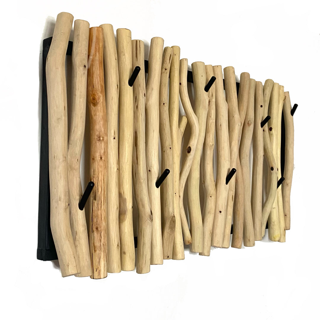 Závěsný bukový věšák s prvky břízy a ořechu